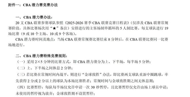 北京时间11月17日,据“球圈赵探长”等多位媒体人消息,CBA新赛季将设额外的“潜力赛”。
