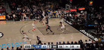 3月7日讯 NBA常规赛,勇士半场55-60落后篮网。