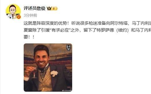 詹俊:这就是阵容深度!听说很多枪迷准备向塔帅、小马丁道歉