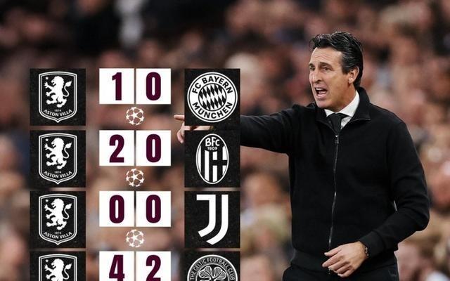 魔鬼主场!维拉近7个欧战主场不败,赢拜仁、巴黎,平尤文