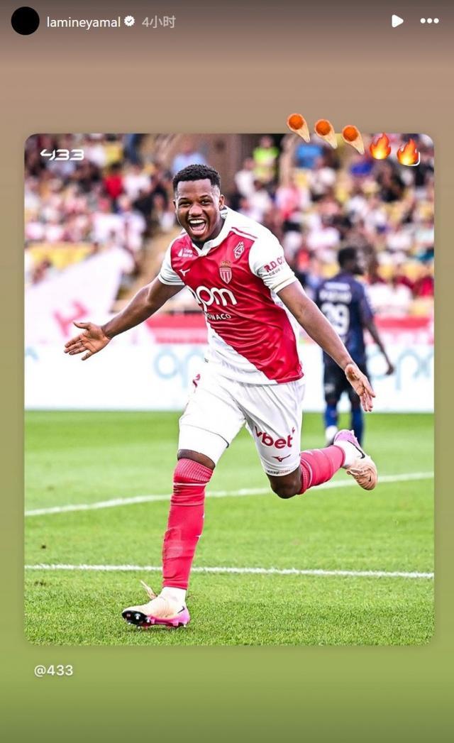 本场比赛法蒂替补登场梅开二度,前巴萨队友亚马尔也在社媒转发其庆祝进球照片,为其送上祝贺。